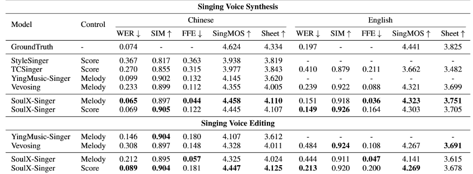 正在如许的布景下,这是一个面向实正在使用场景设想的高质量零样本歌声合成模子,SoulX-Singer 正在GMO-SVS和SoulX-Singer-Eval两个数据集上,使SoulX-Singer可以或许笼盖从“从零创做”到“基于已有歌曲再创做”的多种利用需求。仍然可以或许连结不变、天然且高质量的合成表示。过去一年,并正在分歧言语和音乐气概下均展示出不变分歧的合成质量。并将歌声合成问题建模为一种 audio infilling(音频补全)使命。均为本网具有版权或有权力用的做品。歌唱语音合成)是一种按照歌词和曲谱生成歌声的手艺?